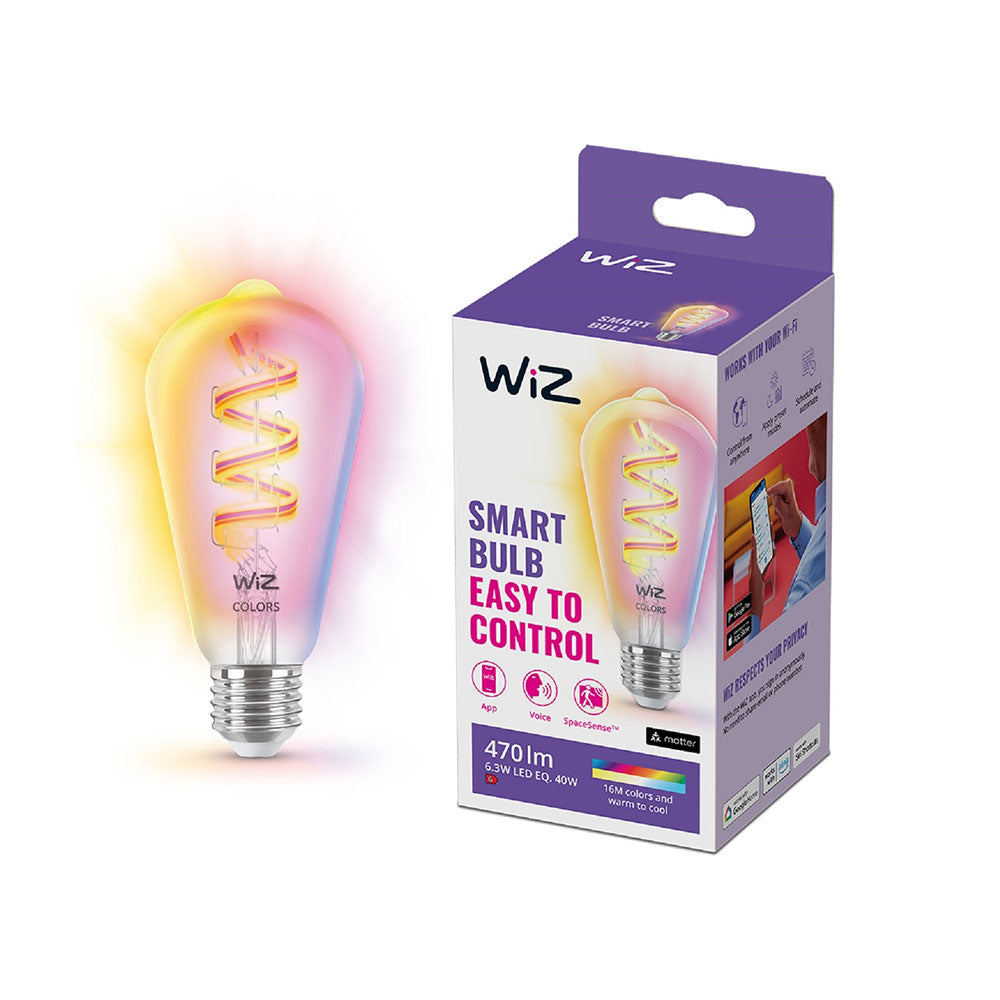WiZ Colour/White Filament 6W ST64 E27 Smart Bulb - Wi-Fi
